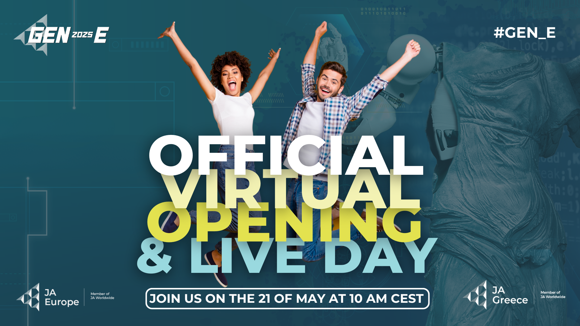 On Wednesday, May 21st, at 10:00 AM CEST, the official virtual opening ceremony of Gen-E 2025 will be streamed LIVE from Athens on the event’s official website www.gen-e.eu as well as on the JA Europe and JA Greece Facebook pages.